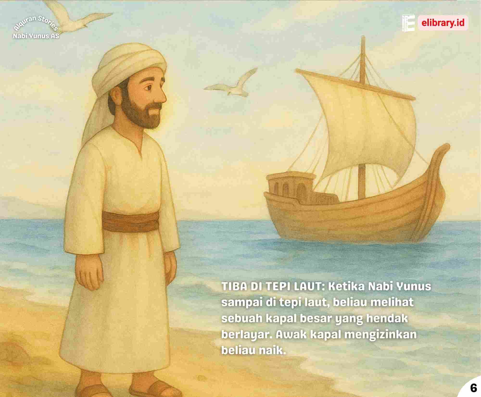 TIBA DI TEPI LAUT: Ketika Nabi Yunus sampai di tepi laut, beliau melihat sebuah kapal besar yang hendak berlayar. Awak kapal mengizinkan beliau naik.