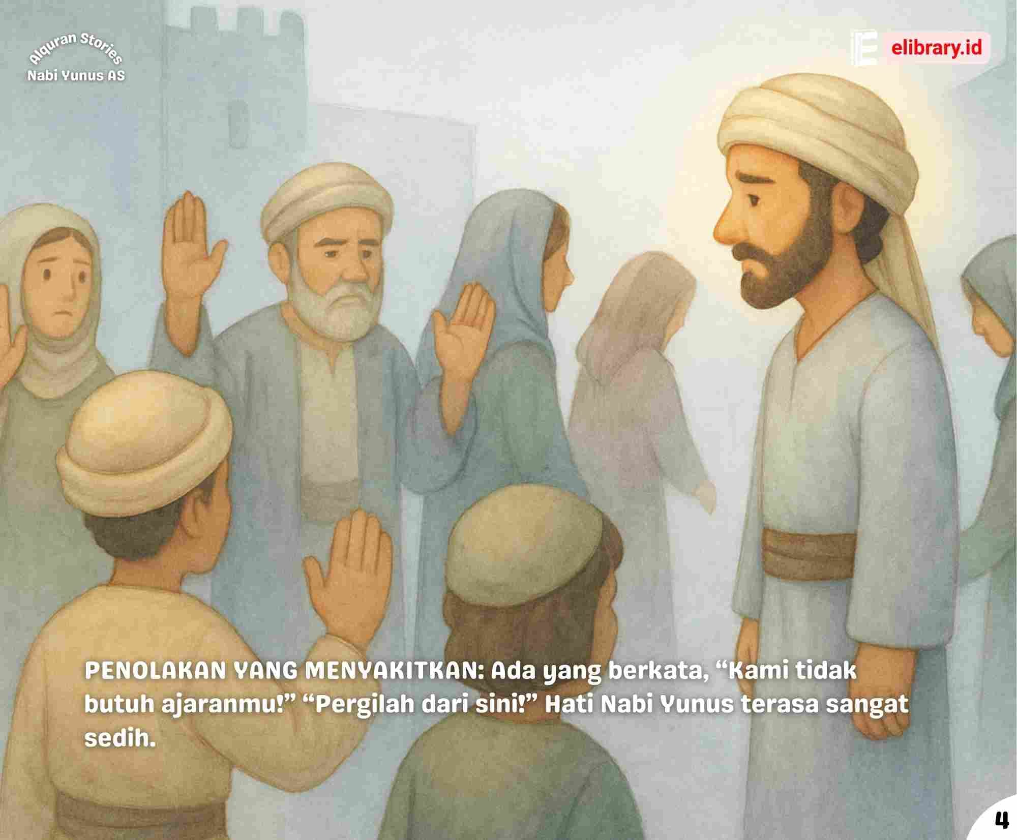 PENOLAKAN YANG MENYAKITKAN: Ada yang berkata, “Kami tidak butuh ajaranmu!” “Pergilah dari sini!” Hati Nabi Yunus terasa sangat sedih.